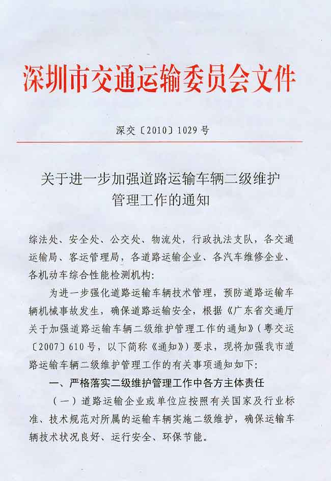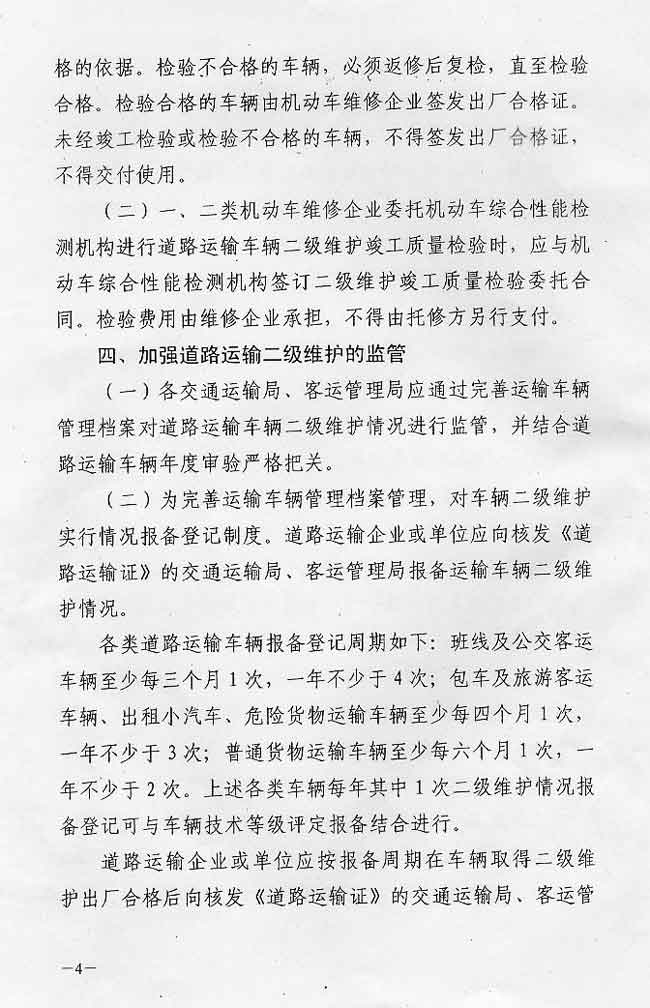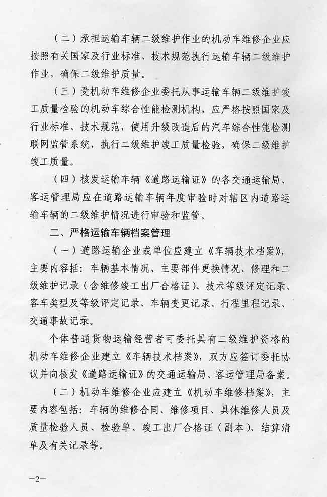 关于加强车辆二级维护管理工作的通知